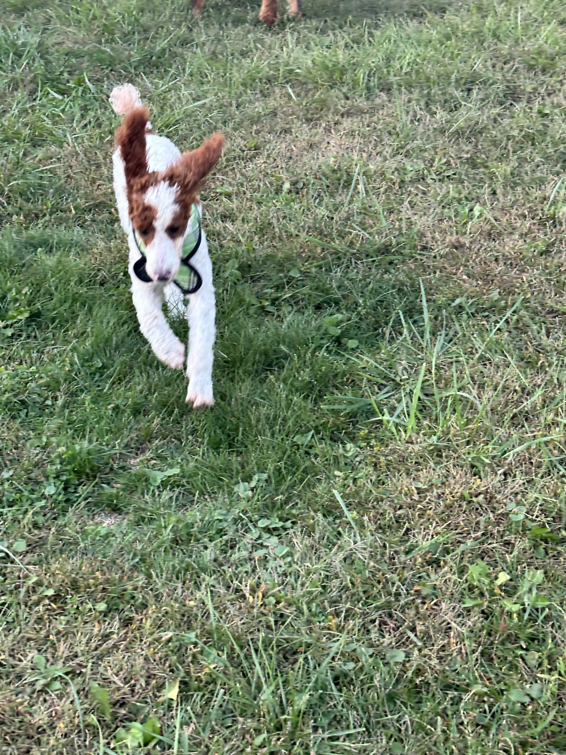 Amelia is very used to being crated, and sleeps like a baby in her crate every night. She enjoys chewy toys and balls for playtime - and this girlie has energy to expend and will even hop around a bit when running around outside. She eats dry kibble twice daily, once in the morning and once in the evening.