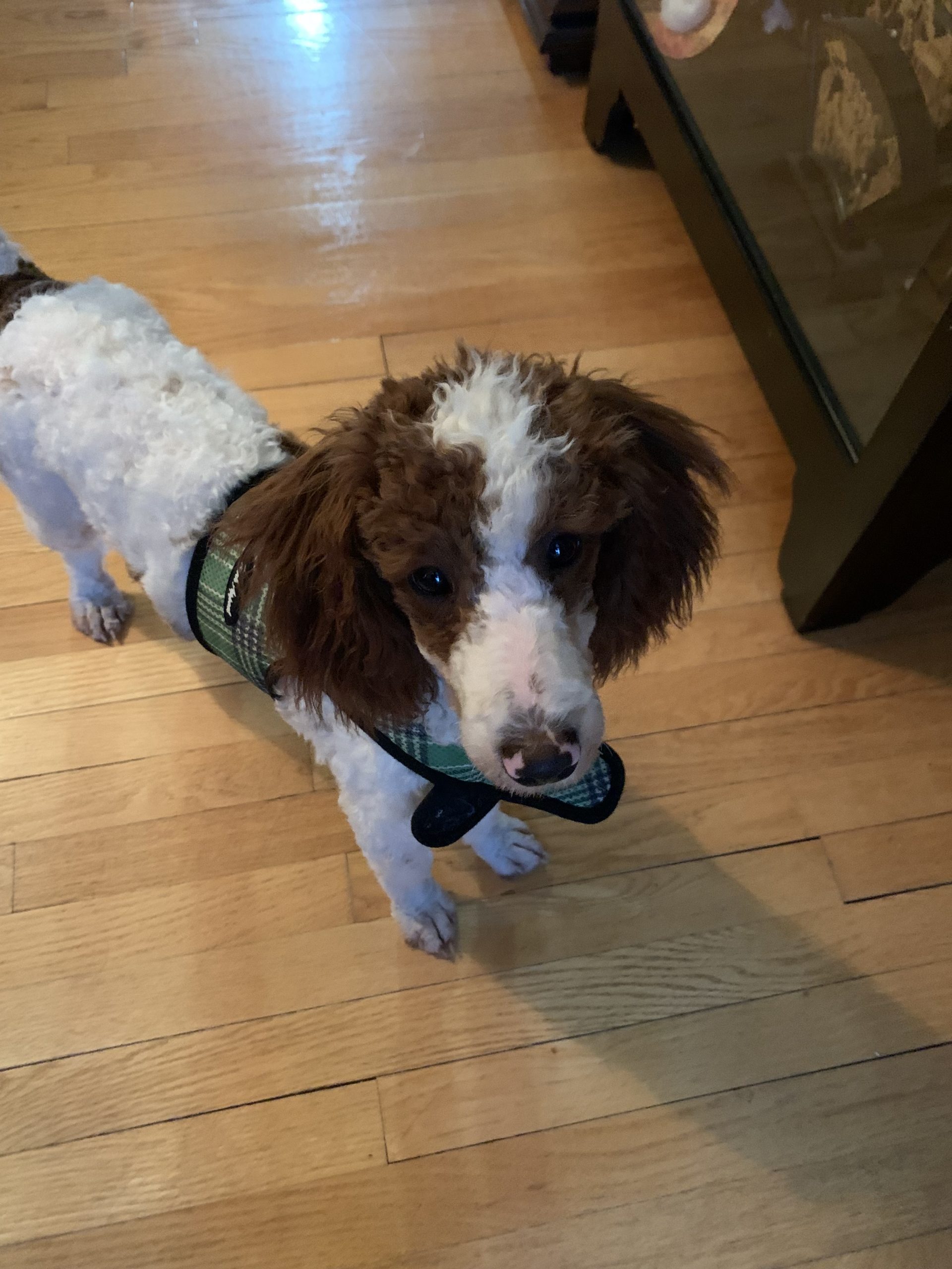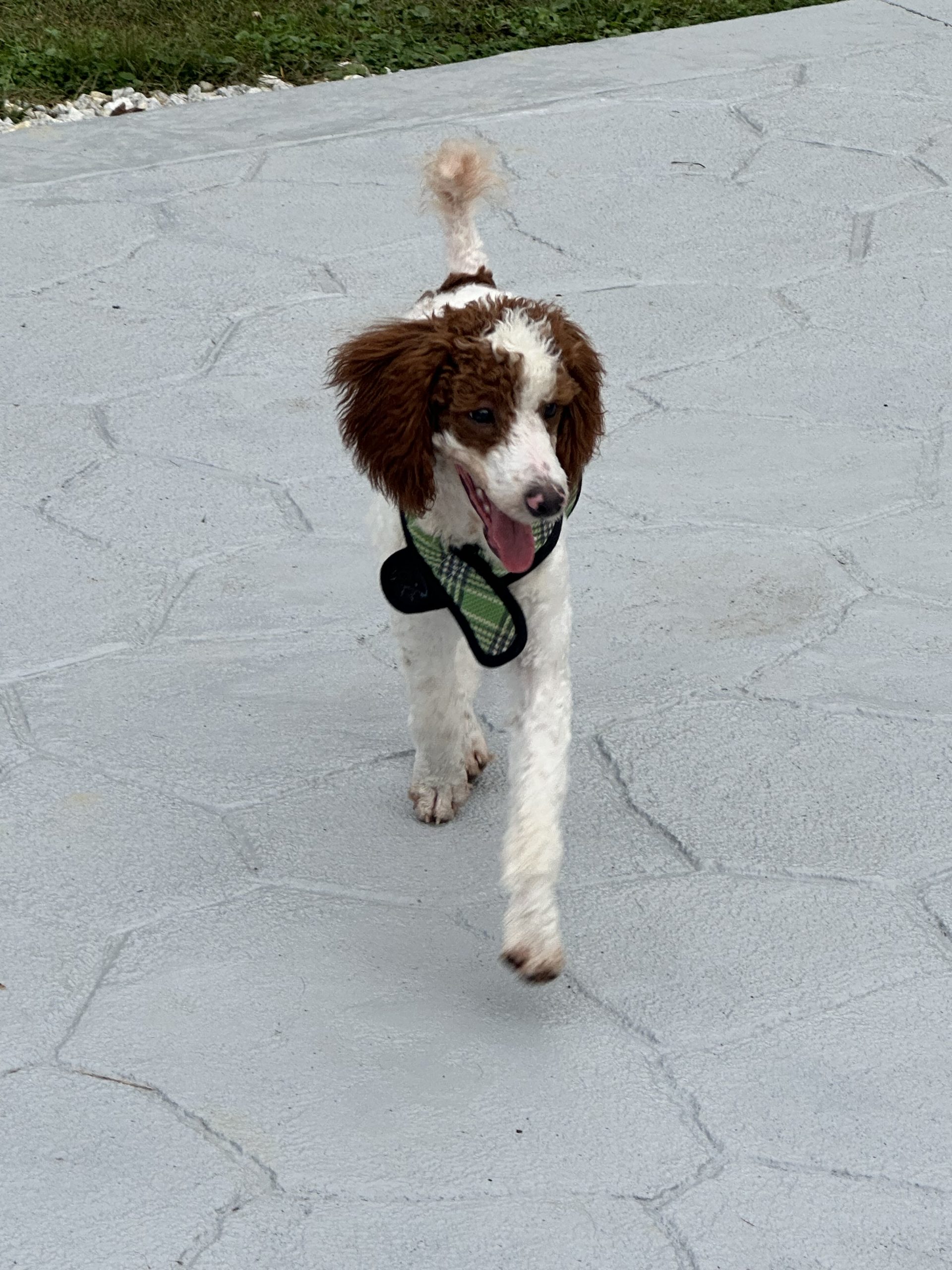 Since Amelia came from Amish Country - she is learning how to settle into the "house pet" lifestyle. She is a little afraid of being on leash, as she never experienced it previously. She is being introduced to it slowly and so far is learning to trust that it's a safer way to be out in the world beyond herĀ foster's backyard. She is receptive to treats and is very trainable.
