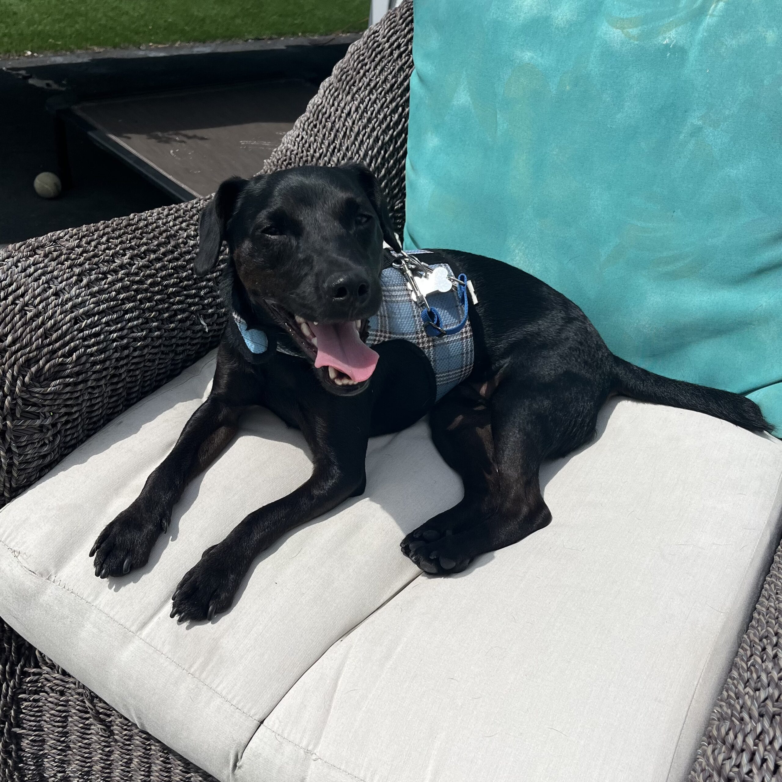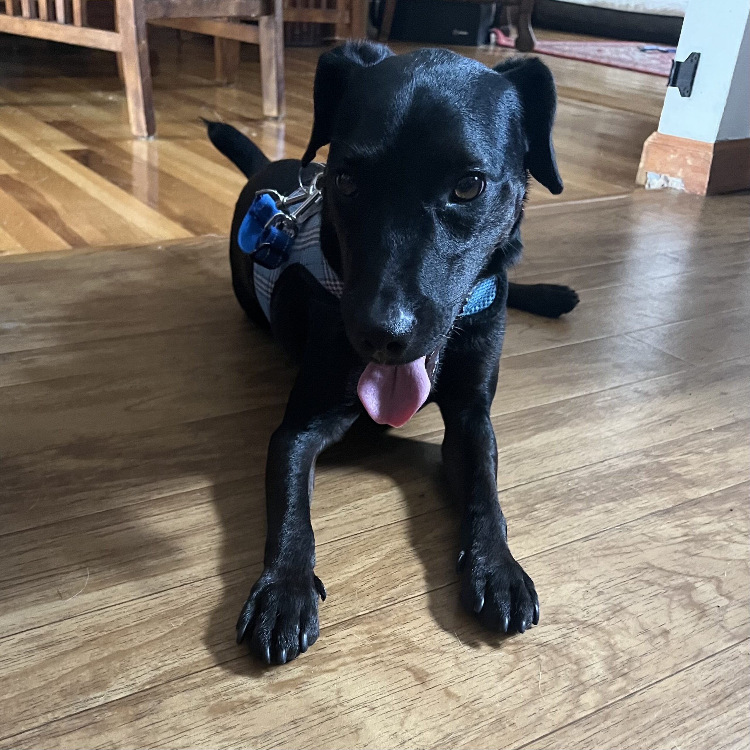 Midnight loves walks, time outside basking in the fresh air and sunshine, and curling up near you. For the right human, he’ll be your fiercely devoted little shadow who never lets you feel alone.