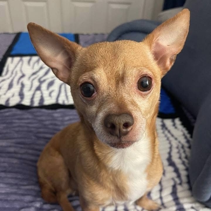 Prince is a local 8-year-old, 11-lb., housebroken, weewee pad-trained, leash-trained male chihuahua. He is not yet neutered. We will arrange that. I am getting a copy of his medical records.
