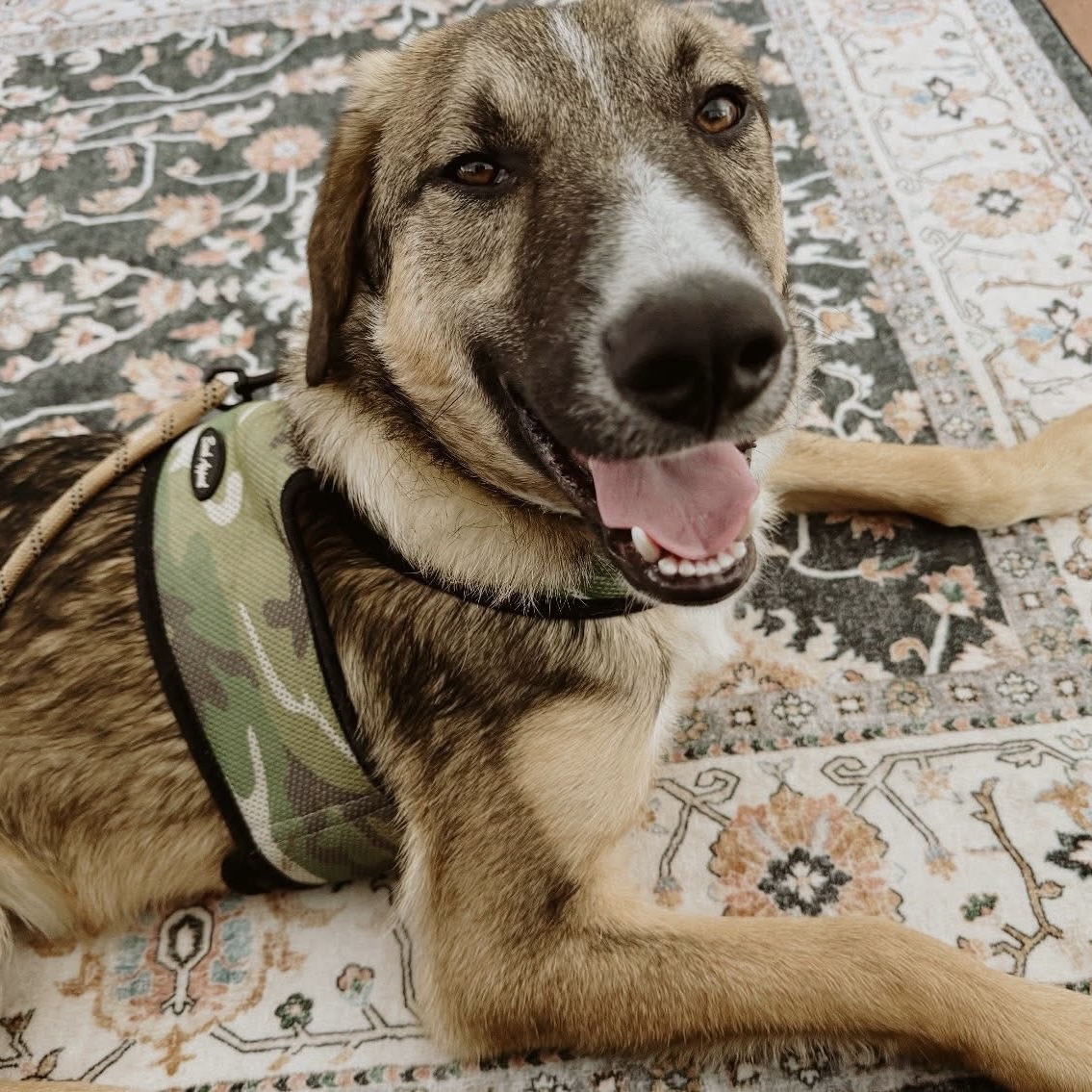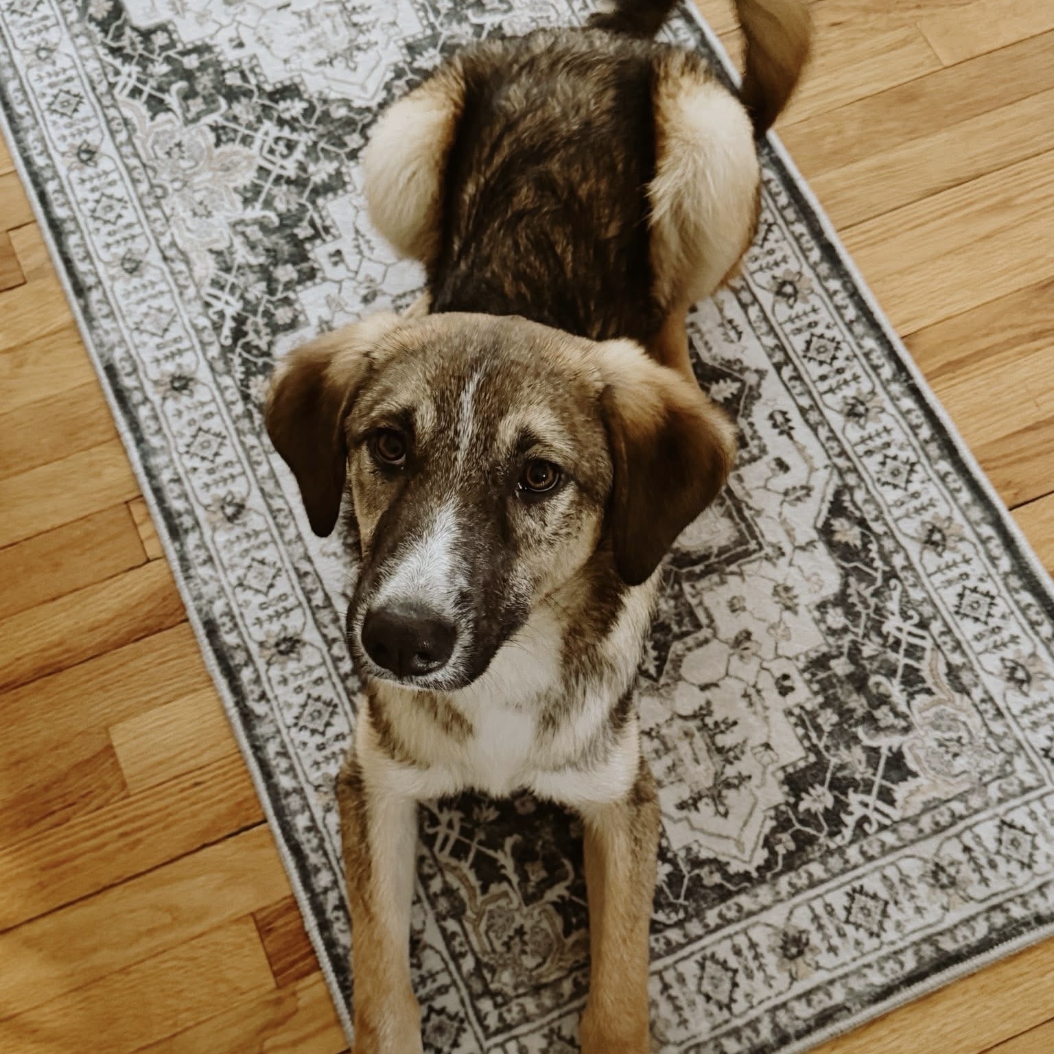 When meeting new people in his foster home, Robbie will have his tail a-wagging and will show his big beautiful brown eyes. Beyond the those soulful eyes, Robbie has an extremely sweet nature that is just starting to shine through in foster. He also has a playful and slightly silly side that adds to his overall charm. On a lazy Sunday, Robbie truly thrives outside with a furry best friend that he loves and trusts. Indoors, he naturally gravitates to shared spaces to be near his resident bestie, happily continuing the fun—always with close supervision from his foster parents.