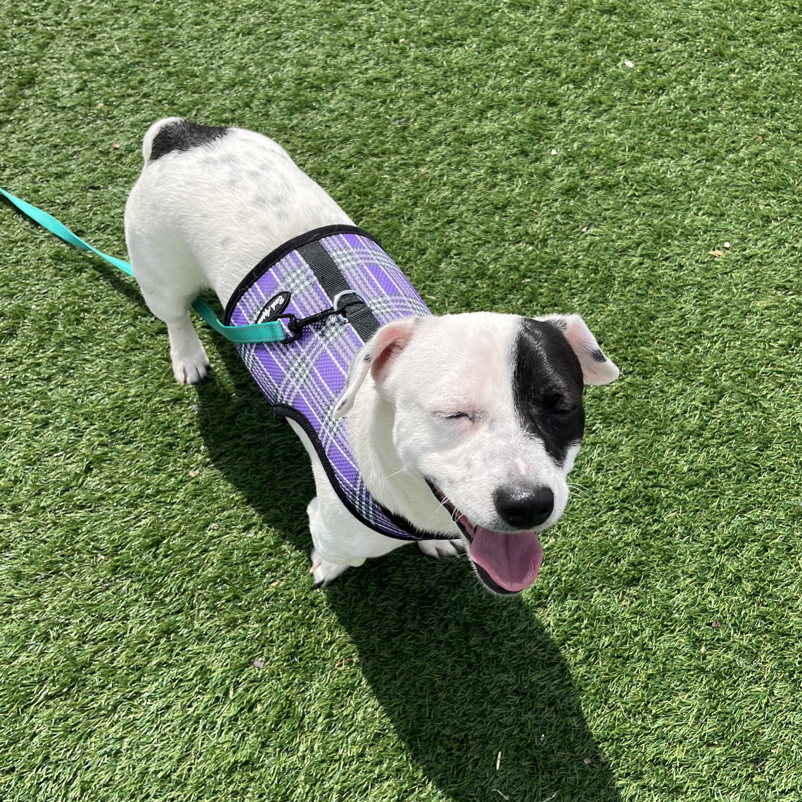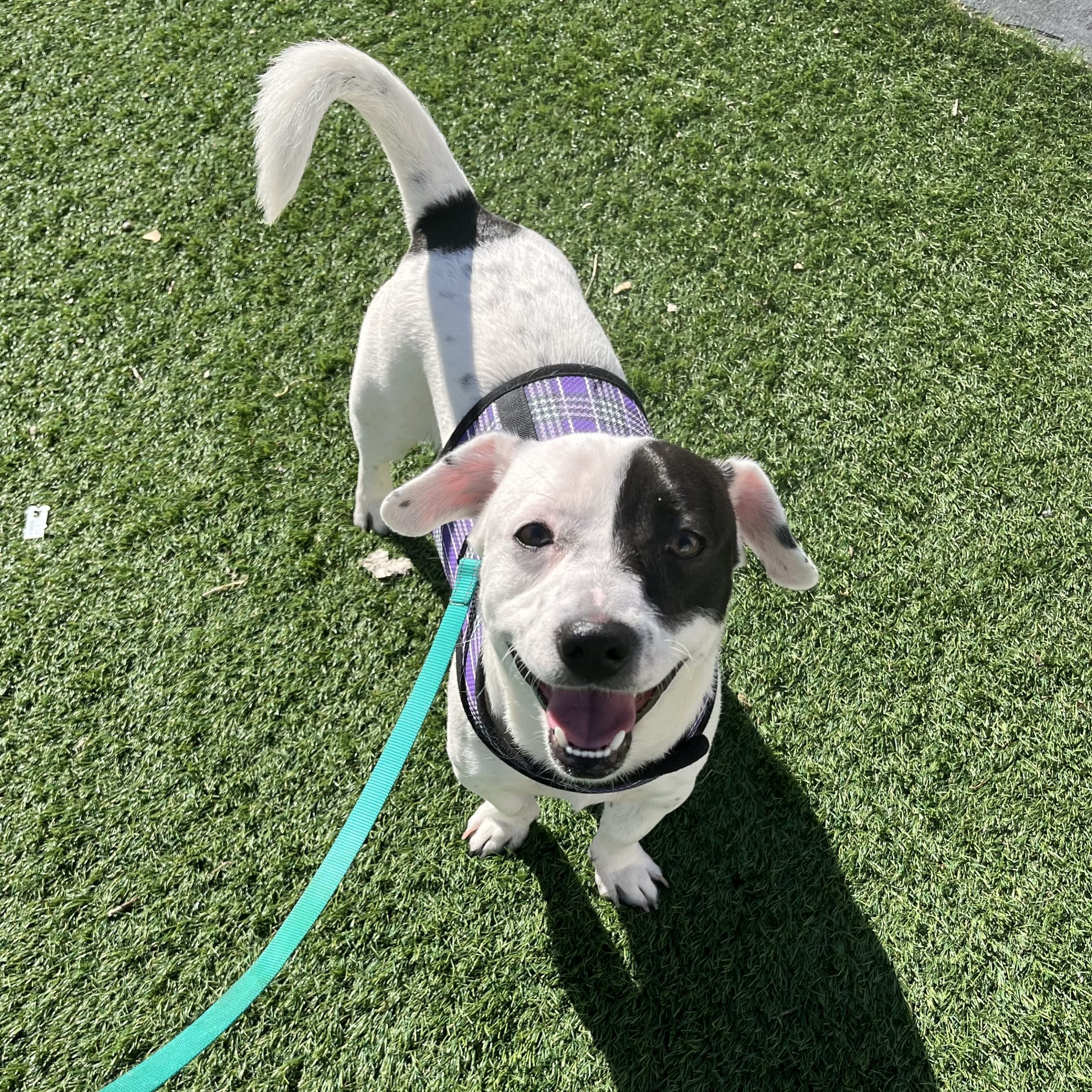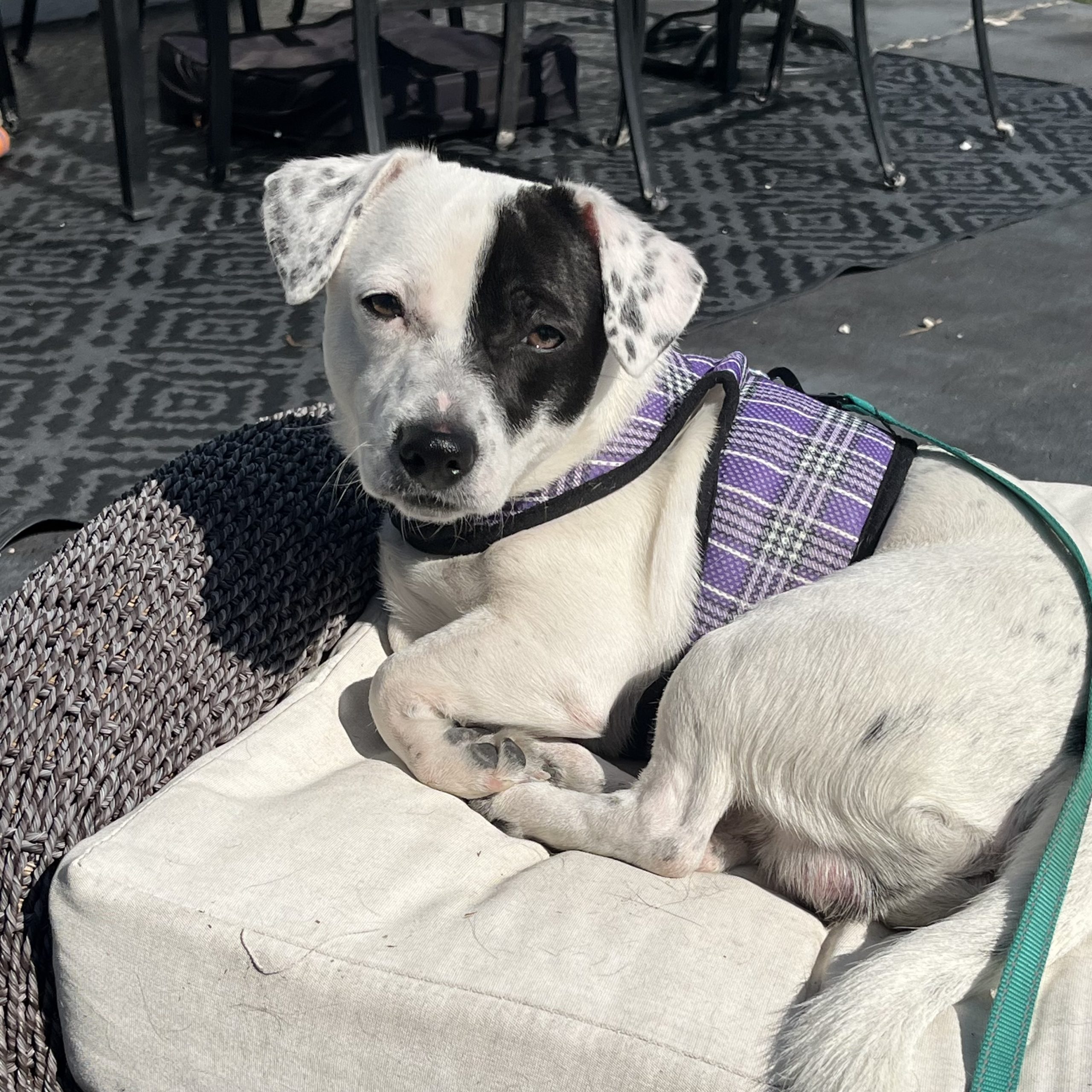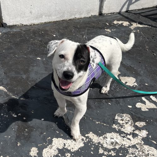 Spot is vaccinated and scheduled for neuter on 3/31. He is potty trained and crate trained- he sleeps in his crate overnight and is crated when his foster is away from home. He loves to play with his older foster fur brother, a very energetic husky/shepherd, who has helped him adjust beautifully to his new foster home. He seems to be a little more motivated by toys than treats- chasing after balls in the backyard is his favorite past time… aside from snuggling on your lap or at your feet.