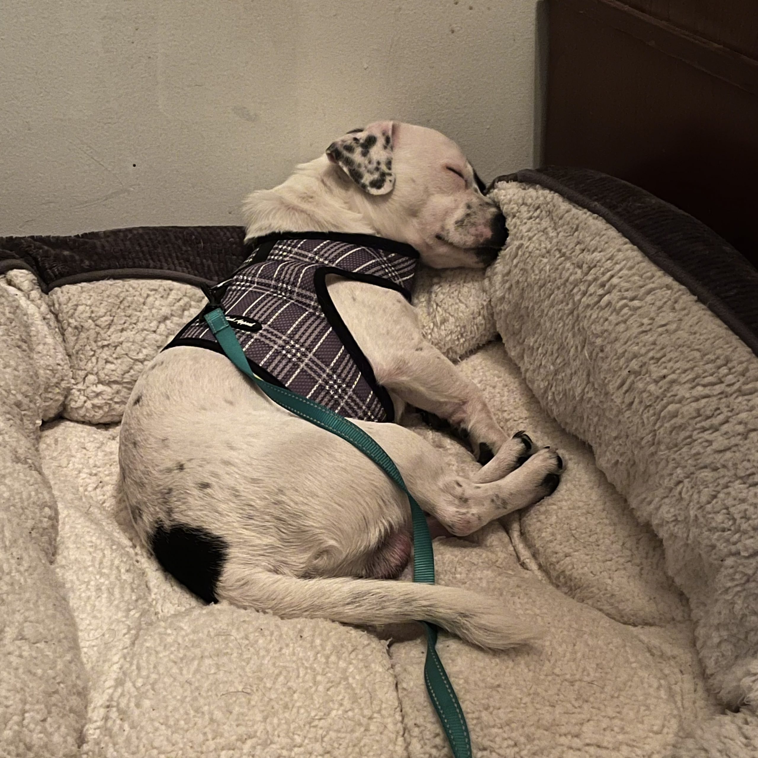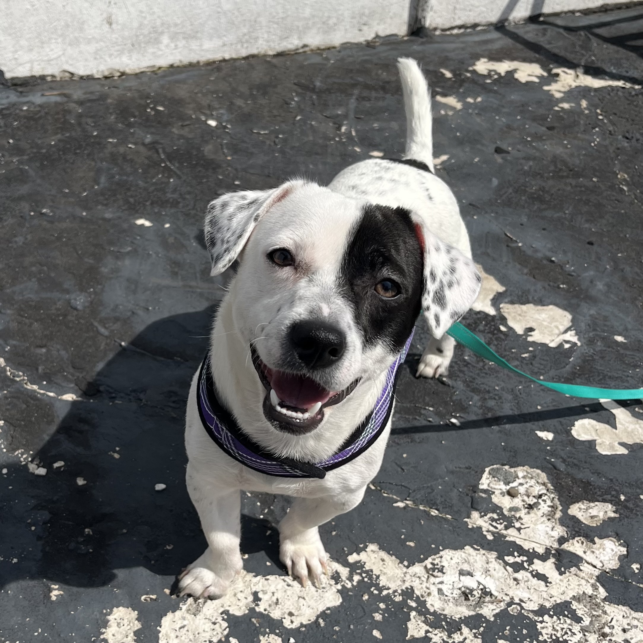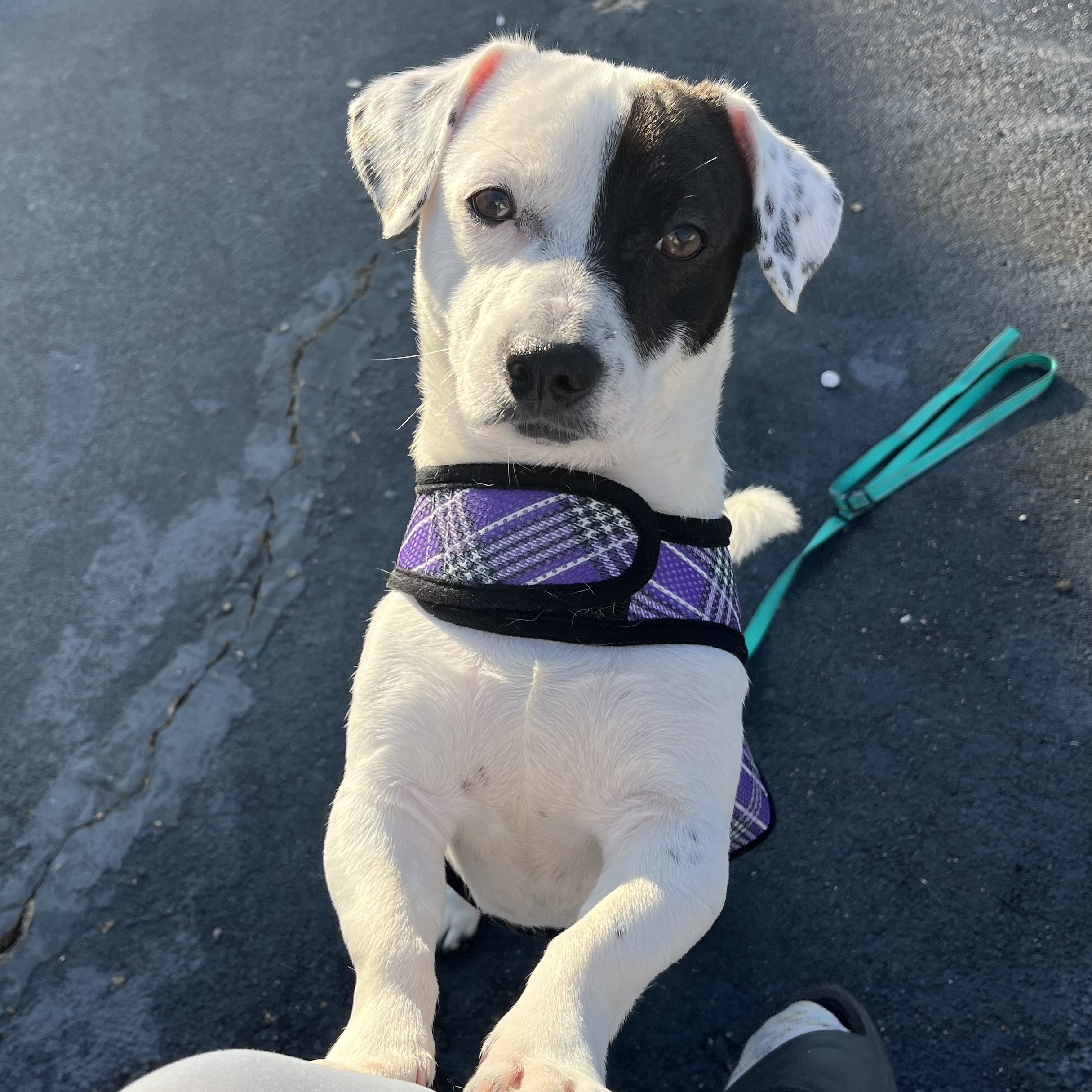 Spot is vaccinated and scheduled for neuter on 3/31. He is potty trained and crate trained- he sleeps in his crate overnight and is crated when his foster is away from home. He loves to play with his older foster fur brother, a very energetic husky/shepherd, who has helped him adjust beautifully to his new foster home. He seems to be a little more motivated by toys than treats- chasing after balls in the backyard is his favorite past time… aside from snuggling on your lap or at your feet.