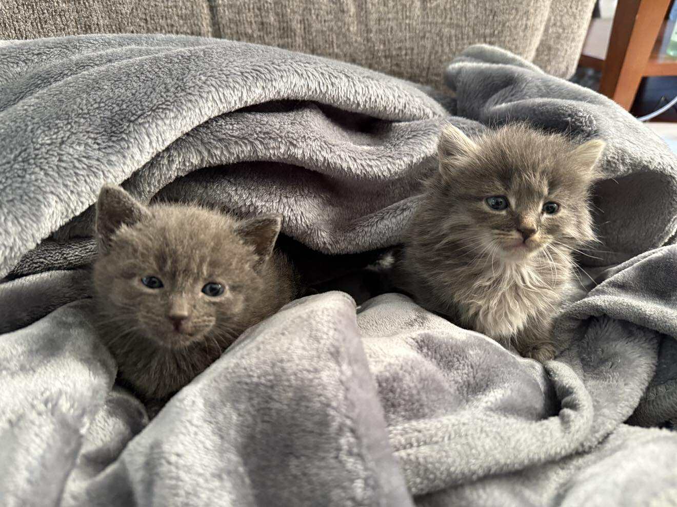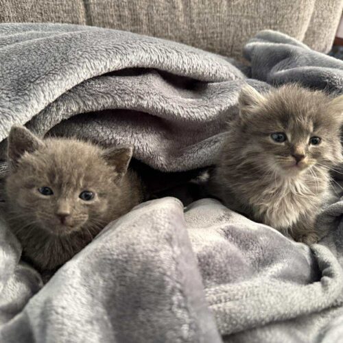 Sweet, tiny Cricket (on the right in the picture) was found as a stray kitten with his siblings in Paterson, New Jersey.  They were discovered in a storm drain, and there was no mother cat in sight! Our rescue responded and took them right in for our intake care by our rescue bottle feeder/nurse/amazing foster mom! They were initially bottle fed, but are now weened onto wet kitten food.