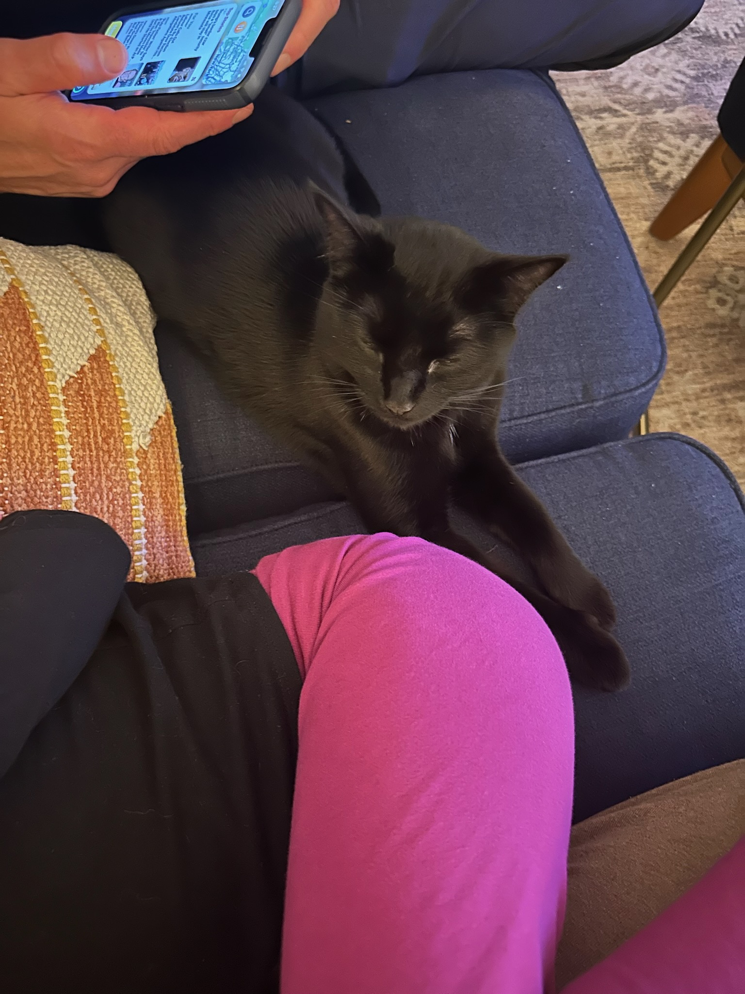 Ethel is equal parts playful and cuddly. She loves string toys, jingle balls and gazing out of the window — but her absolute favorite activity is being with her human. She’s a certified lap cat who will happily curl up on the sofa with you, snuggle in bed at night, and follow you around the house just to be close.