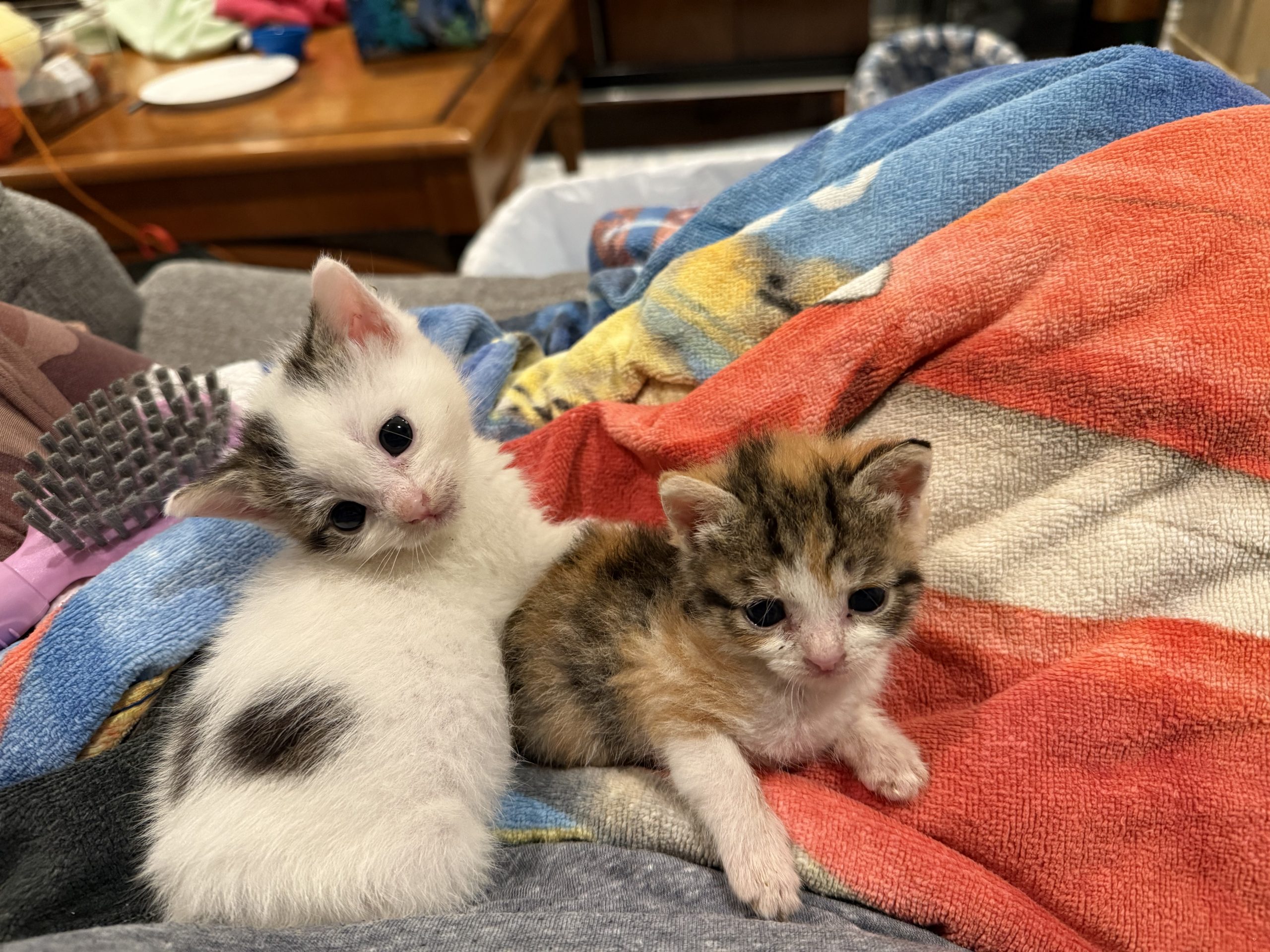 On a lazy Sunday afternoon, Olaf snuggling on a warm lap or spending time with her foster pup sibling. Although Olaf tries to care for her kitten sister, she sometimes gets a little overwhelmed and overstimulated.