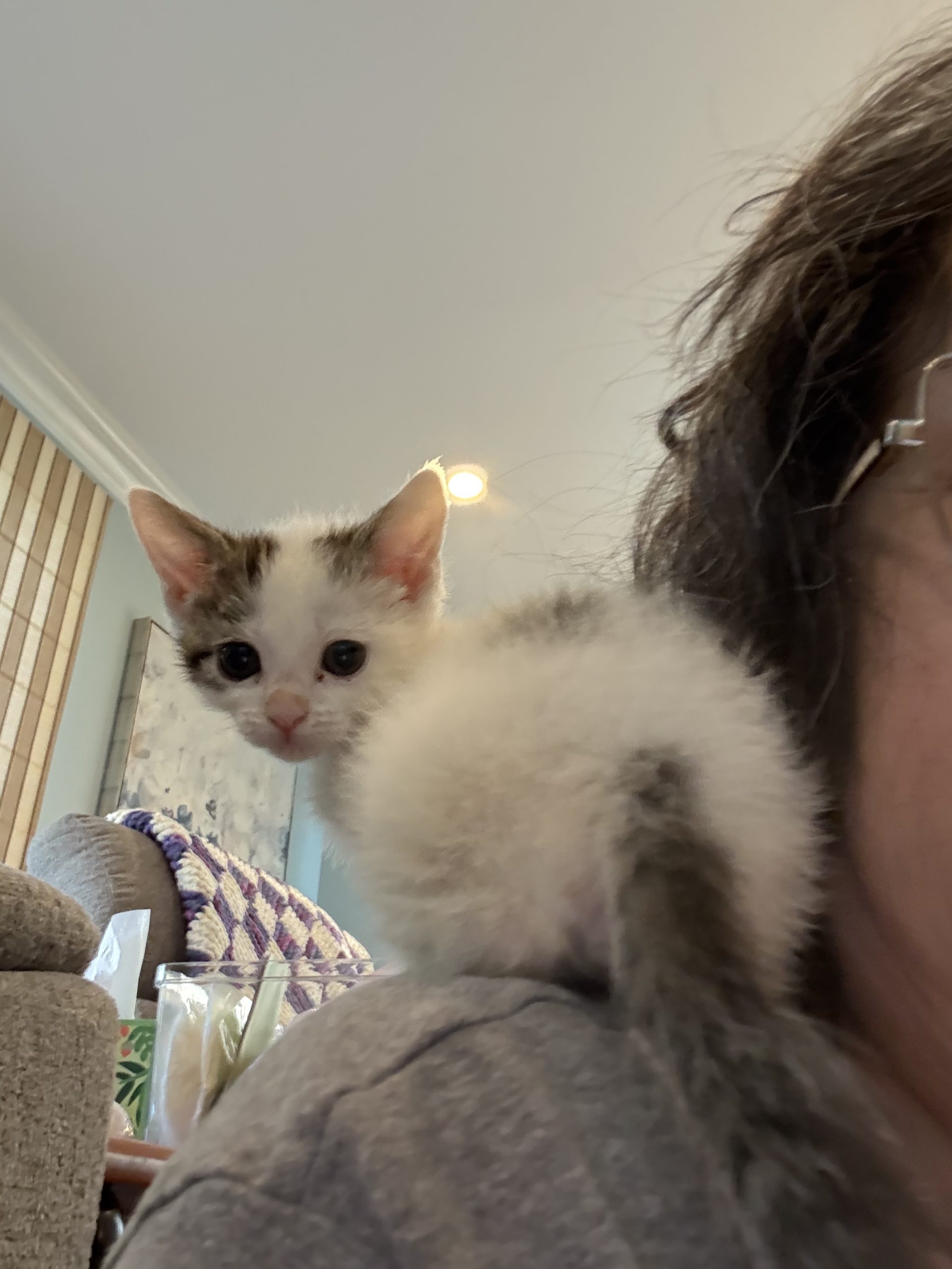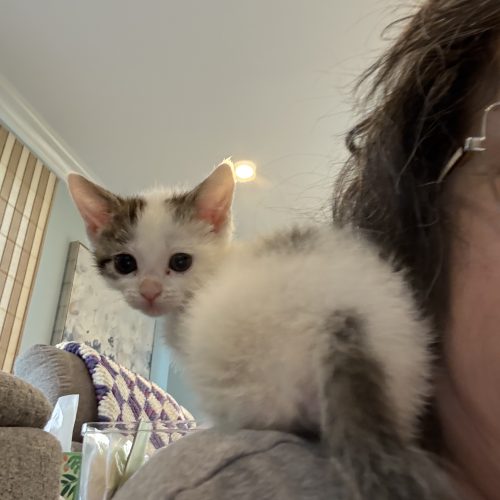 Meet Olaf - our beautiful CH snow kitty who is looking for a safe place to land that'll adore her shakey quirks and accept her in all of her snow white beauty. Olaf has mild Cerebellar Hypoplasia, which is a condition where the cerebellum, a part of the brain responsible for coordination, balance, and muscle control, is smaller than normal or underdeveloped. She is wobbly and needs a little soft support to move around in the world. A Good Samaritan found Olaf and her sister Elsa in a parking lot in Paterson and contacted rescue for assistance.